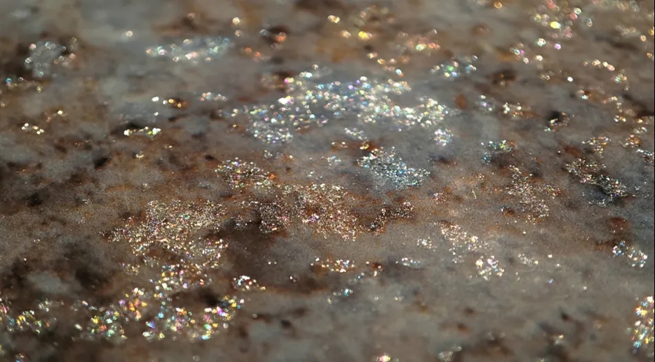 据悉,欧文莱从天然琥珀形成肌理中获得启发,创新性地研制了“虫核”颗粒配方和制备工艺技术,外加“松脂面釉”,让“虫核”颗粒从多界面、多角度产生重复的折射和反射光线,形成发光球体,获得具有“玉中钻”视觉效果。并利用“釉面琥珀装饰技术”生产出行业首创的2700×1200mm规格“'奢隐系’陶瓷大板”新产品,以及系列花式品种30多款。